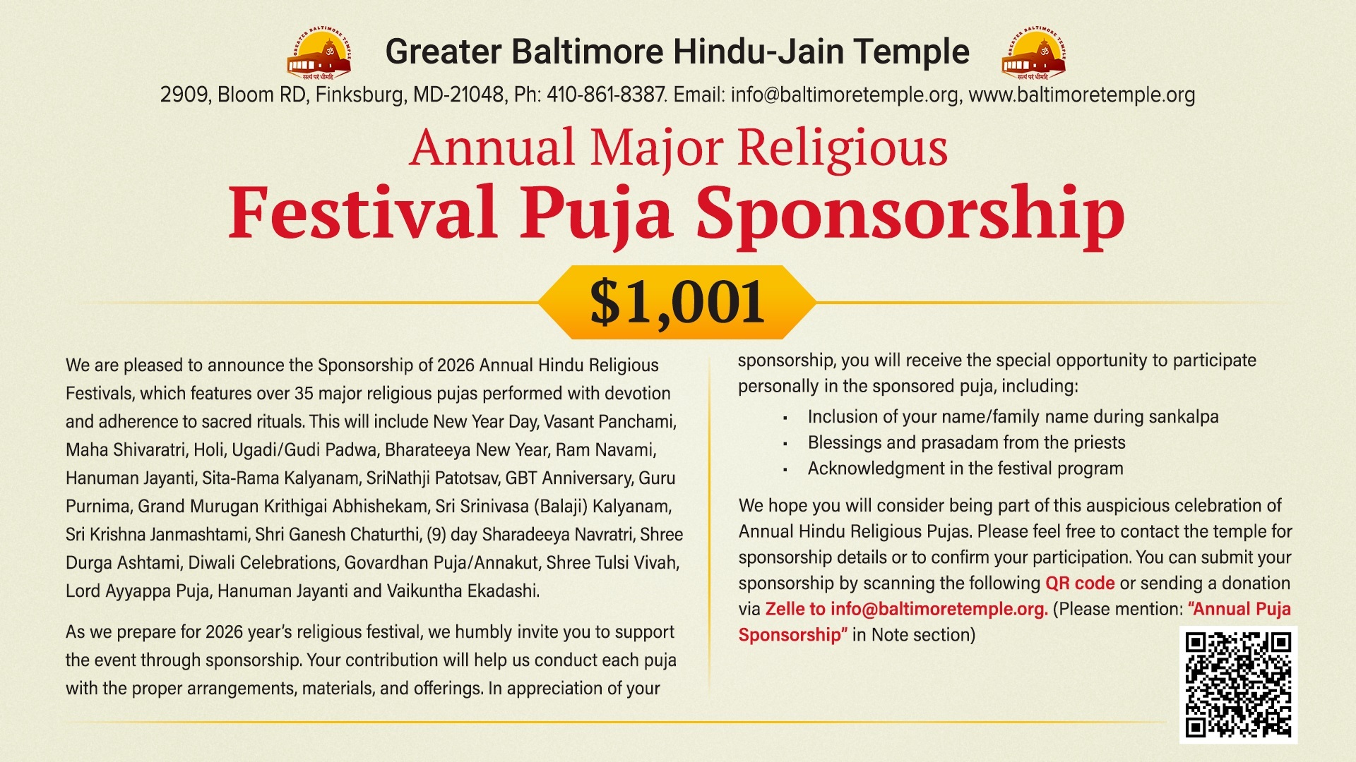 - Annual Major Religious Festival Puja Sponsorship - 2025