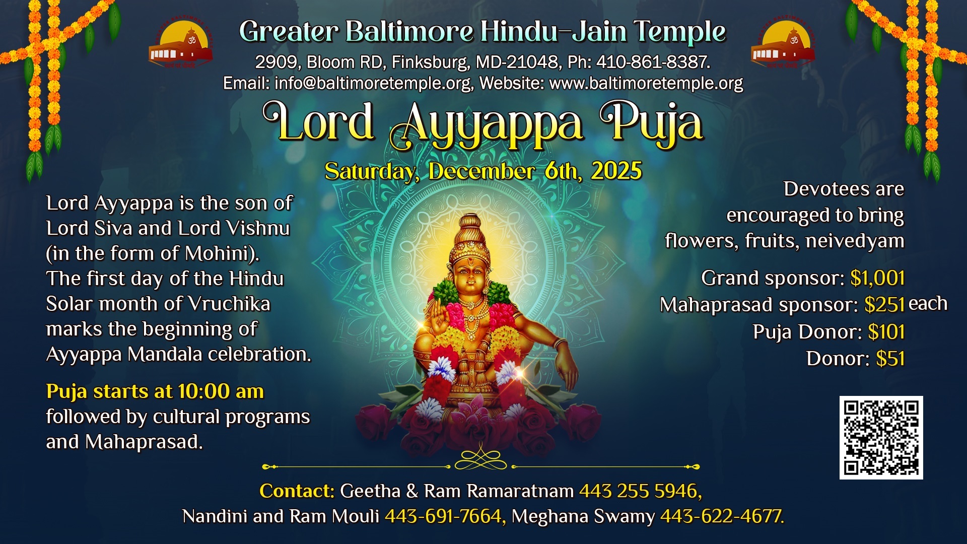 - Lord Ayyppa Puja - Sat, Dec 6, 2025