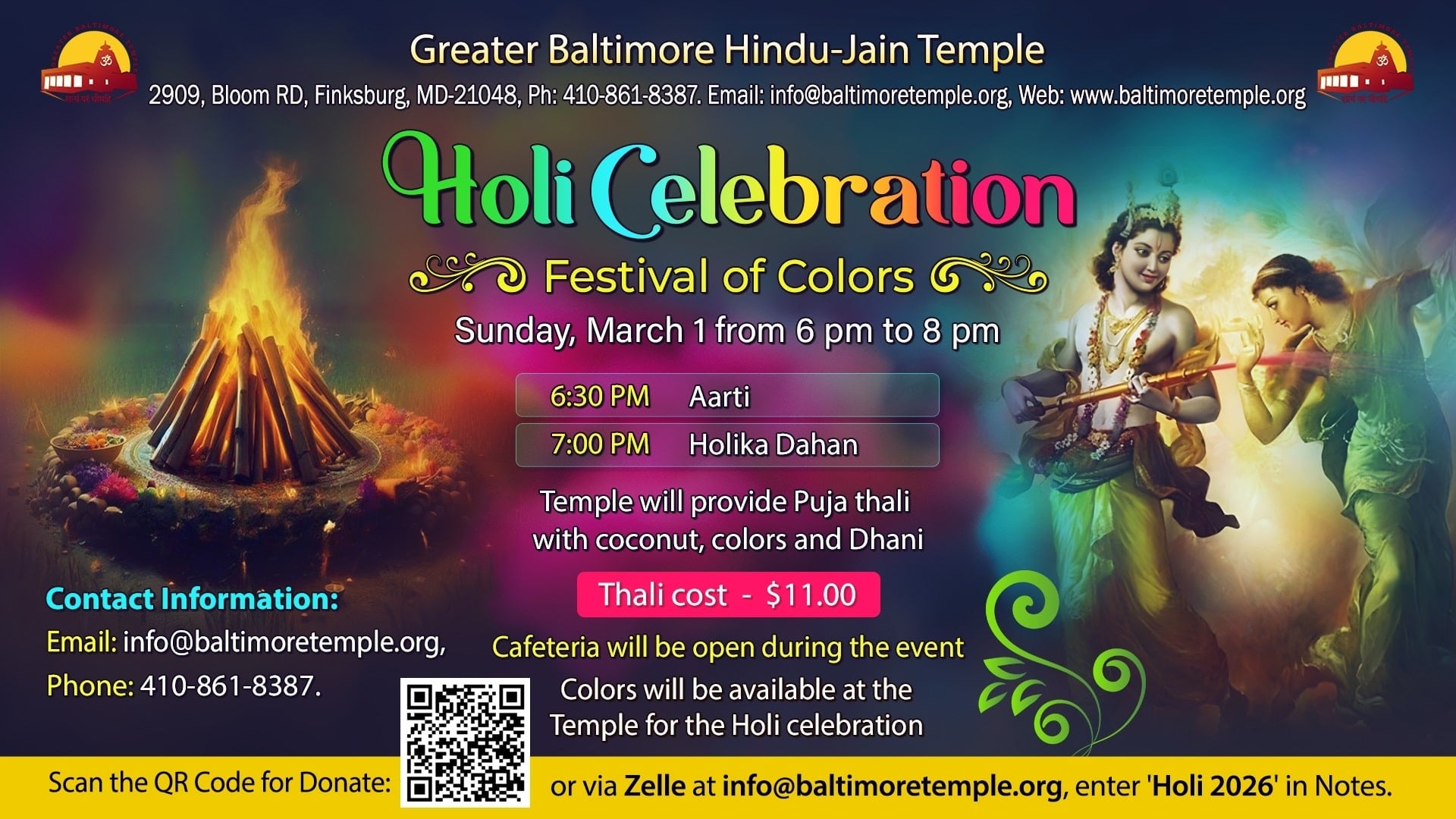 - Holi Celebration - Sun, Mar 1, 2026