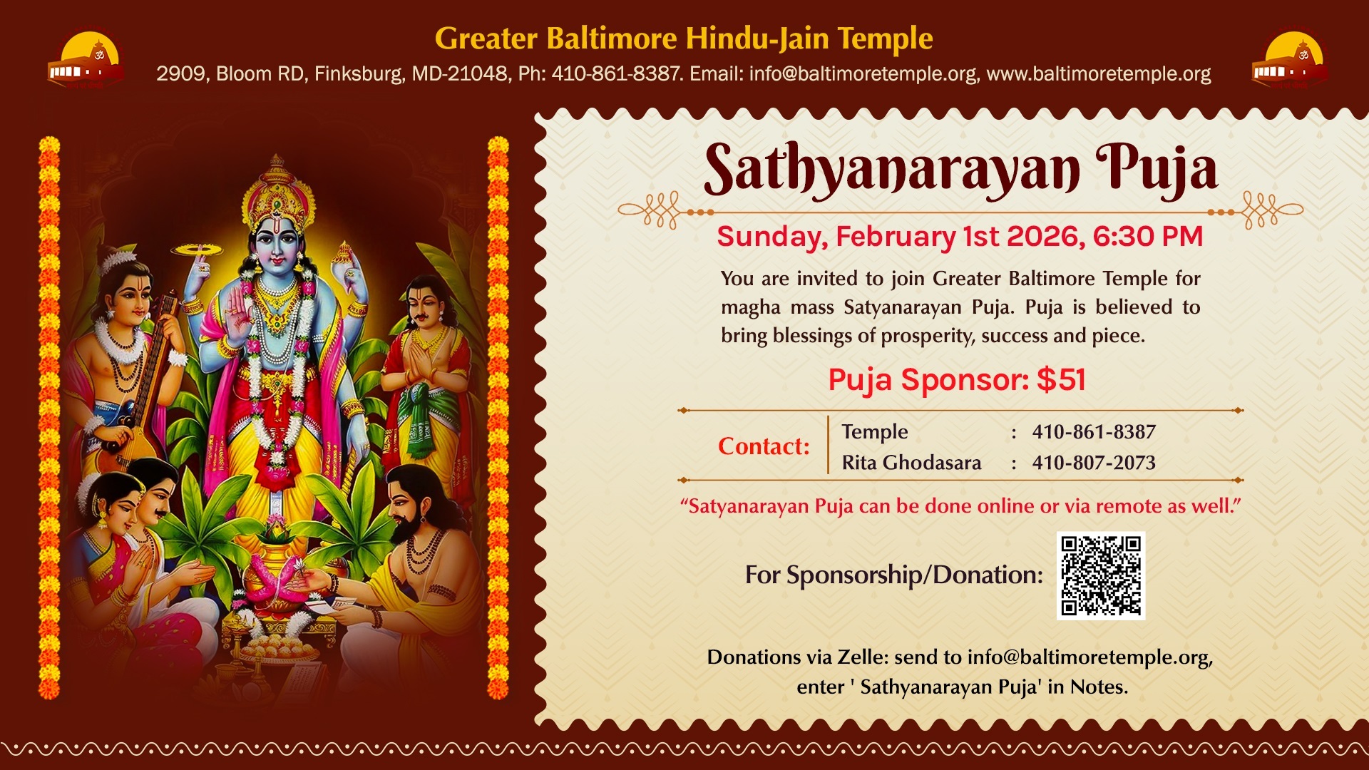 - Sathyanarayan Puja - Sun, Feb 1, 2026